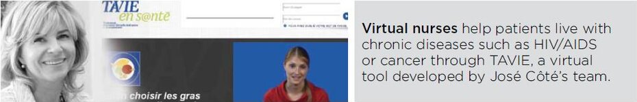 The « TAVIE™» virtual nurse concept was mentioned in the 2015 CRCHUM Leaflet in a page dedicated to discoveries to improve health (p.8).